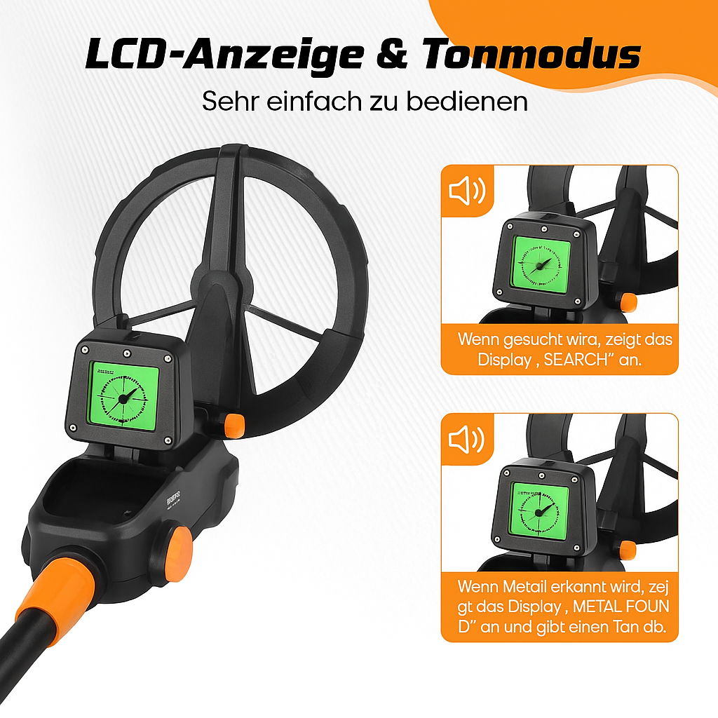 Die akustische Signalerkennung und das übersichtliche LCD-Display zeigen sofort an, wenn Metall in der Nähe ist. Münzen, Schmuck oder kleine Fundstücke – der KahnFinder reagiert zuverlässig und schnell.