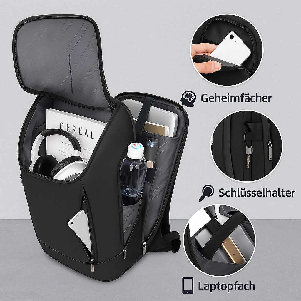 🧠 Clever durchdacht: Mit Laptopfach, Schlüsselhalter, Smartphone- & Geheimfächern 💧 Wasserdicht & robust: TPU-Oberfläche schützt bei jedem Wetter 💨 Komfort pur: Luftkissengurte & ergonomischer Rücken – kein Schwitzen, kein Drücken 📦 Viel Platz, smarte Ordnung: 20–35 L Volumen ( 48 x 31 x 15 cm) – ideal für Alltag & Business 💼 Business trifft Design: Clean, modern, unisex – passt zu jedem Look